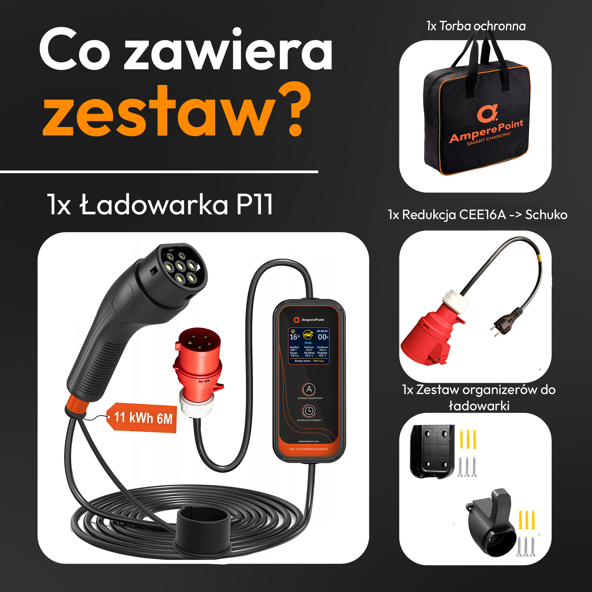 Tragbares Ladegerät P11 – 16A, 11 kW, Typ 2